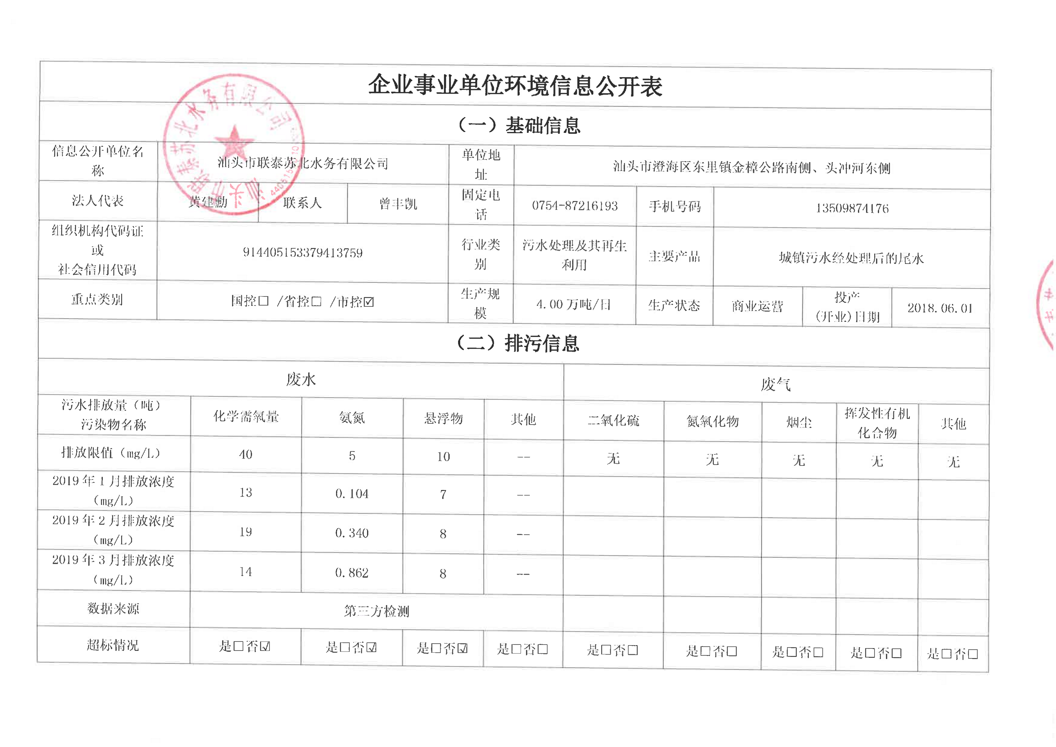 企業(yè)事業(yè)單位環(huán)境信息公開表發(fā)布時(shí)間:2019-05-23